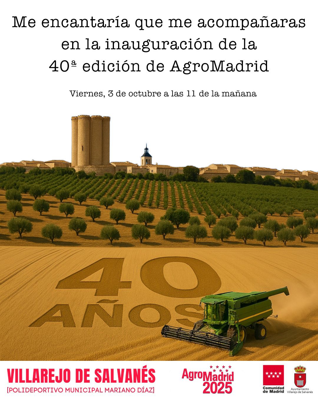 La Feria de AgroMadrid es una exposición de productos del sector agropecuario con el objetivo de su promoción y venta. AgroMadrid se celebra con carácter anual desde 1984, organizada por el Ayuntamiento de Villarejo de Salvanés y la Comunidad de Madrid. La entrada GRATUITA para todos nuestros visitantes:
