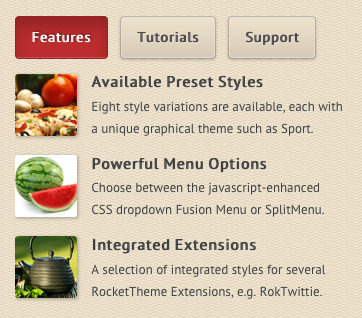 To replicate, use the following format: <ul class="class name"><li>....</li><li>....</li>...</ul> (HTML) or [list class="class name"][li]....[/li][li....[/li][/list] (ROKCANDY). The class names are listed below, such as "checkmark red".